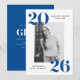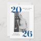 Invite guests to your graduation party with our modern Bold 2025 graduation party invitations. The stylish graduation party invites display the graduate's photo framed in white with 2025 in bold blue lettering at the top left and bottom right corners. Personalize the front of the photo graduation party invites by adding the graduate's name & school name. The invite reverses to display your party details in white lettering against a solid blue background.