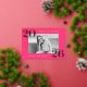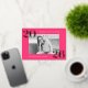 Modern graduation party invitations featuring the graduate's horizontal photo framed in hot pink with 2025 in bold, gold foil lettering at the top left and bottom right corners. Personalize the front of the photo graduation party invites with the graduate's name and school name. The foil graduation invitation reverses to display your party details in white lettering with a hot pink background. The background colour can be changed to a colour of your choice with our edit design feature. The hot pink graduation party invites work perfectly for both high school and college graduation parties.