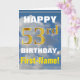 Bold, Cloudy Sky, Faux Gold 53rd Birthday + Name Card