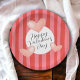 Celebrate love in its sweetest form with this colorful Valentine's Day paper plate featuring a charming bright pink and red striped background accented with soft watercolor hearts. Happy Valentine's Day is written out in a modern script type face. These plates are great for entertaining at Valentine's Day at home, school, work, or social organizations. Plates are available in 2 sizes: shown here in the smaller 7-inch diameter size, they are also available in a 9-inch diameter size.