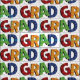 It's all about the bold colours here as your graduate steps out into the world. The word GRAD in four colours chopped into segments with a confetti background. Pattern of red, green, blue, yellow, black, and white in half-square triangles forms the border. Overall a great festive look for invitations or party supplies. Personalize with the graduate's name, school and class year. Matching products available.
