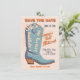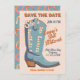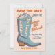 Save the date Cowboy western boot with fun fonts and a mod retro vibe. Features a cowboy boot with funky colours of pinks, orange, blue and very light creamy touch of pinky white. Perfect for a cowboy country western themed Bat Mitzvah! All wording can be changed except for the words "becoming a bat mitzvah", but you can delete it. Hand drawn by McBooboos. To make more changes go to Personalize this template. On the bottom you’ll see “Want to customize this design even further? Click on the EDIT using Design tool. It will take some learning but you can change some of the fonts & some colours, move things around or delete what you need. You'll get the hang of it.