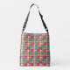 The bag features a colourful patchwork design with squares of the same size arranged in a grid pattern, creating a vibrant and eye-catching appearance.