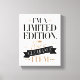 You’re one of a kind—let your decor show it! This "I’m a Limited Edition, Not a Clearance Item" stretched canvas print is the perfect reminder to embrace your uniqueness. You can personalize the colours for your favourite, making it a bold and stylish statement piece for your bedroom, office, or personal space!
