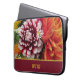 This laptop sleeve features vivid orange and burgundy dahlias, as well as a contrasting burgundy color block with your initials in golden orange. Type your initials in the space provided for a personalized laptop sleeve.