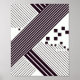 The design presents a striking contrast between a white background and bold black elements. Thick diagonal black stripes intersect across the composition, creating dynamic geometric divisions. Between and around these broad stripes, numerous thin parallel black lines add rhythm and structure. In addition, black squares of varying sizes are arranged in grid-like and staggered patterns, enhancing the visual balance. The artwork combines minimalism with strong geometric abstraction, producing a modern and rhythmic visual effect.