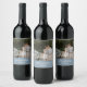 Bold Dusty Blue Retro Custom Wedding Photo Wine Label