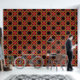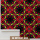 This vibrant peel and stick wallpaper showcases a bold floral pattern. Stylized red flowers with intricate central details pop against a dark background, surrounded by leaf-like shapes in yellow. The symmetrical design creates a dynamic visual effect, making it an eye-catching choice for interior decor. The smooth texture and adhesive backing make it easy to apply and change as desired.