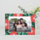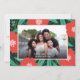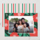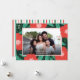 Send cheer this New Year with these brightly coloured floral photo cards (horizontally oriented)! They feature flowers, leaves, and pine in bold red orange, coral, blush pink, green, and teal green / mint. Text reads, "HAPPY NEW YEAR," but it can be customized to say whatever you'd like. The back contains multicolored stripes in colours that match the front.