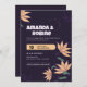Celebrate your big day with this bold and vibrant wedding invitation. Featuring a dark purple background with playful orange floral accents and chunky modern typography, this design is perfect for couples who want their wedding invite to feel unique, lively, and full of personality.