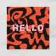 This modern design has the word Hello, in a bold font, on an asymmetric abstract in black, with bright colours, pink and rust orange.