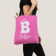 Modern funny hot pink magenta and white monogram and name personalized tote bag featuring a whimsical fun typography. Suitable for teens, young adults, students, or teachers as a birthday or a Christmas gift.