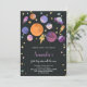 Blast off into an unforgettable birthday with this bold black planets outer space invitation! Featuring a dark galaxy background filled with colourful planets, stars, and a rocket ship, this editable design is perfect for space-loving kids. Easily customize your child’s name, age, and event details using Zazzle’s design tools. Great for astronaut, rocket, or solar system-themed parties.