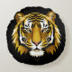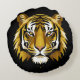 Bold Geometric Tiger Portrait With Abstract Golden Round Pillow