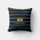 Bold Gold Monogram, Name, Blue Lines on Black Throw Pillow