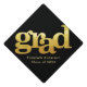Bold gold typography on black simple modern graduation cap topper
