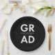 Custom graduation plates featuring "Grad" in bold white lettering with a black background or color of your choice. Personalize the graduation paper plates by adding the graduate's name and graduation year. The personalized graduation plates are perfect for both high school and college graduation parties.