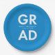 Custom graduation plates featuring "Grad" in bold white lettering with a blue background or color of your choice. Personalize the graduation paper plates by adding the graduate's name and graduation year. The personalized graduation plates are perfect for both high school and college graduation parties.