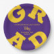 Bold GRAD Custom Yellow on Purple Graduation Paper Plate