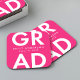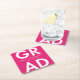 Custom graduation paper coasters featuring "Grad" in bold white lettering with a hot pink background. Personalize the graduation coasters by adding the graduate's name and graduation year. The personalized graduation coasters are perfect for both high school and college graduation parties.