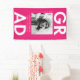 Custom graduation banner featuring "Grad" in bold white lettering with a hot pink background or colour of your choice. Personalize the photo graduation banner by adding the graduate's name, school name, and graduation year. The trendy graduation banner is perfect to display at your graduate's high school or college graduation party!
