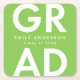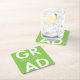 Custom graduation paper coasters featuring "Grad" in bold white lettering with a lime green background. Personalize the graduation coasters by adding the graduate's name and graduation year. The personalized graduation coasters are perfect for both high school and college graduation parties.