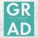 Personalized graduation wine labels featuring "Grad" in bold white lettering with a turquoise background. Personalize the modern graduation wine labels by adding the graduate's name and graduation year. The modern graduation wine labels are perfect for graduation parties!