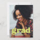 This simple and modern 2022 graduation announcement features a trendy, bold chartreuse yellow green text overlay, along with two photos of the graduate. A stylish and straightforward way to let friends and family know about the grad!