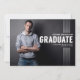 Big, bold, modern typography is featured in this graduation announcement / invitation that blends masculine style with contemporary clean lines. Brawny "GRADUATE" and name/school text are set against the background of your son's full size senior portrait photo. On the back, all the text can be customized. Use as an invitation to a graduation party (as shown) or easily change the text to an announcement only. Perfect for an offset horizontal senior portrait where the subject is on the left.