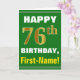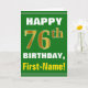 Bold, Green, Faux Gold 76th Birthday w/ Name Card