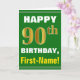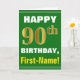Bold, Green, Faux Gold 90th Birthday w/ Name Card