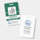 A bold dark green cover is accentuated by well placed white column lines that highlights your badge information. Over at the top is the photo template to place your photo which measures 1,000 x 1,000 pix. Your prestigious name lie in a white column just below the photo. For creative identification, your name is split into two different font sizes ; You may want to consider having dual colours to make your name stand out. In the corresponding column below is your job title. At the base of the badge are the optional blue healthcare logo which you can use, the organization name and contact details.