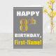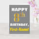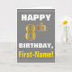 Cette simple carte de voeux d'anniversaire présente un souhait d'anniversaire chaleureux comme "HAPPY 8th BIRTHDAY, First-Name!" sur le devant, en texte gras sur un arrière - plan gris (gris). Le numéro d'anniversaire a une apparence de coloration fausse/imitation or. Le nom sur le devant peut être personnalisé. L'intérieur comporte un message d'anniversaire personnalisable. Une carte de voeux comme celle-ci pourrait être une façon amusante de transmettre des voeux d'anniversaire à quelqu'un qui célèbre son huitième anniversaire. [~Z0000283]