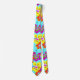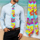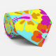 Aqua blue floral neck tie with a big, bold print of colourful hibiscus flowers. Illustrated design in colours of yellow, orange and pink make the perfect accessory for tropical wedding groom and groomsmen.
