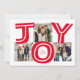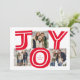 Spread joy this holiday season with a fun bold three-photo holiday card. This festive design features the word JOY in big red letters scattered around a collage of three square photos. The back of the card is a matching red with speckles and also has room for an additional longer holiday message. This Christmas card design is perfect for families, couples, pets and more and it's also available as a digital Christmas card download. Shop the whole collection of bold bouncing joy by Lea Delaveris Design
