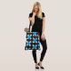This modern tote bag features big bold dots geometric pattern in black and light blue on both sides.