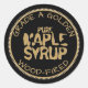 Gold and black maple syrup label with bold text and a coined edge. Generic label for informational purposes.