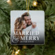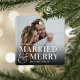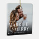 Bold Married & Merry Wedding Photo Newlywed Ceramic Ornament