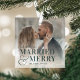Bold Married & Merry Wedding Photo Newlywed Glass Ornament