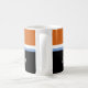 A no-nonsense mug for the serious coffee drinker with bands of orange, white, blue and black colour. Optional monogram on two sides of mug.