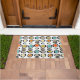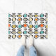 Add a pop of colour to your front door with this funky retro door mat. It features the bright and bold colours of turquoise, two shades of orange, gold, and tan, and black.