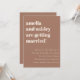 Set the tone for your special day with this bold minimalist wedding invitation in a soft mocha hue, featuring retro-inspired typography and a clean, simple layout. Perfect for modern couples who love a mix of vintage charm and contemporary style, this invitation strikes the perfect balance between elegance and personality. The warm mocha colour adds a cozy and sophisticated touch, making it an ideal choice for weddings with a timeless, understated aesthetic.
