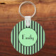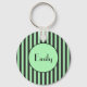 Modern and bold mint green and black stripe personalized keychain with customizable centre text to add name or monogram. Makes a great gift for co-workers and home office occupiers!