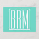 Bold Modern 3 Initials Monogram | White On Aqua Postcard