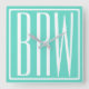 Bold Modern 3 Initials Monogram | White On Aqua Square Wall Clock