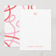 Minimalist personalized stationery with a modern monogram design, perfect for professional correspondence or sophisticated personal notes. The front features a clean white background with a monogram initial at the top and a name displayed in sleek red serif lettering at the bottom, creating a refined and contemporary layout. The reverse side showcases a striking abstract swirl pattern in bold red and pink, adding a modern artistic contrast that elevates the design’s uniqueness. Ideal for business professionals, writers, or anyone who values stylish custom stationery with a clean yet artistic flair.