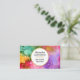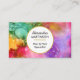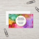 The front of this beautiful business card features bold, multicolored watercolor paint splatters, with the name and job title appearing inside a gold-edged white circle at the centre in popular typography, separated by a gold divider. The back of the card features the business name at the top, and three lines of contact information at the bottom, separated in the middle by a gold divider. You can personalize this item for yourself or a loved one by changing all of the text lines.