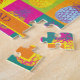 Funky brightly coloured puzzle printed with a pop art pattern of pineapple fruit in coloured squares, with a customisable text area at the bottom to add your name or message