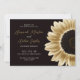 These bold but elegant 7" x 5" wedding invitations feature a big sunlit sunflower with customizable placeholders that include the introduction, "Together with their families," wedding couple first and last names, "for their wedding," wedding date, time, venue location and "reception to follow."