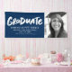 Congratulate the graduate! This banner features a place for a photo of the grad along with a trendy and modern "graduate" in bold brushy type and custom text that can include name, school, year and future plans in white. Makes a great graduation yard sign to celebrate your senior and also works and graduation party decor. The default colour is a navy blue, but that's editable to your school colour by clicking "customize." Check out the Lea Delaveris Design graduation collection for coordinating items and other colour options.